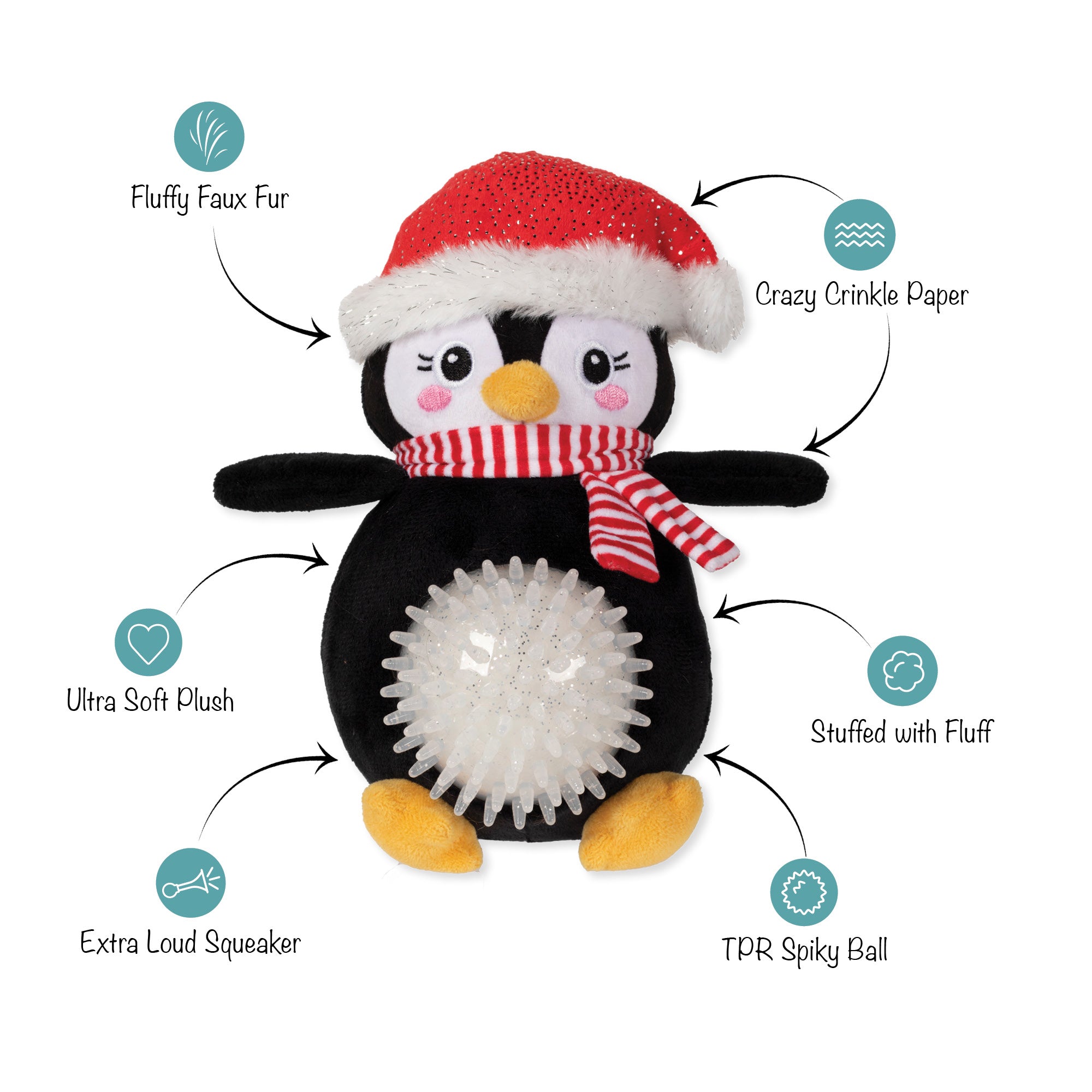 Have an ice day! Our “Play It Cool” plush toy is perfect for playtime, anytime. This toy features a unique spiky glitter TPR ball exterior to promote teeth cleaning benefits, a super loud squeaker, and crazy crinkle paper. Made to encourage playful and positive chewing habits, your pup will agree this toy is a peng-win!